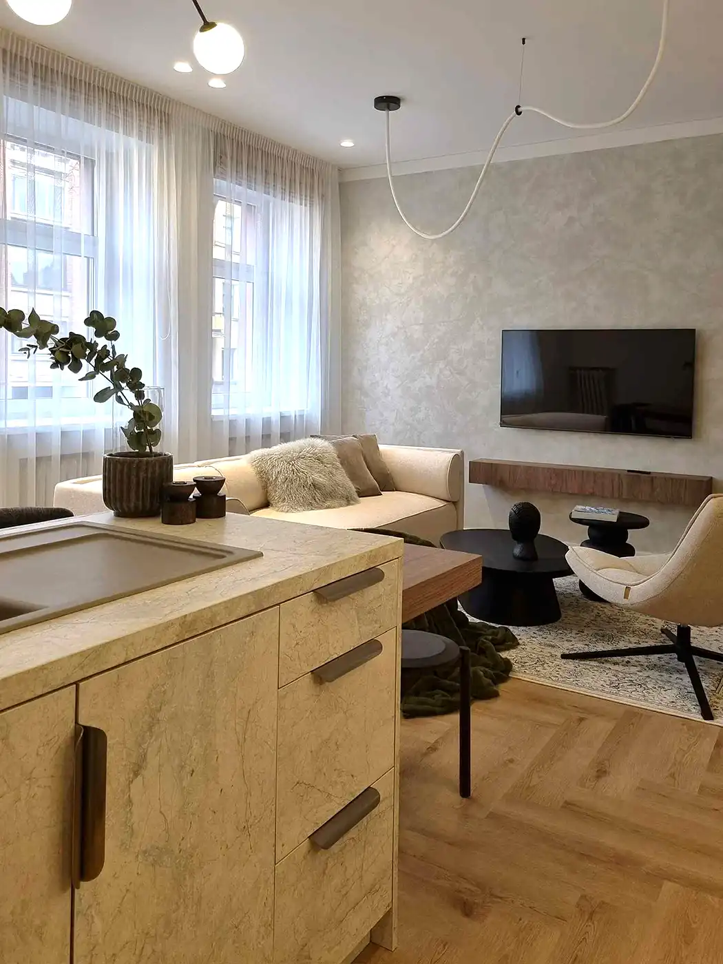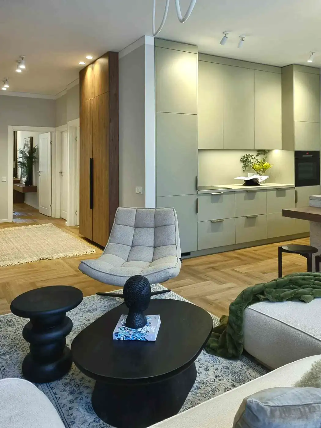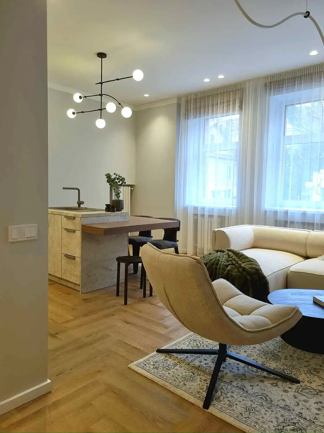 Projektą įgyvendino „Callus“ komanda – vidaus apdailos specialistai, atliekantys pilnus būsto vidaus apdailos darbus. Visi darbai atlikti laikantis technologinių standartų, naudojant patikrintas medžiagas ir įrankius. Dėmesį skyrėme ne tik estetikai, bet ir praktiškiems sprendimams – kad įsikėlus būtų galima patogiai gyventi be papildomų rūpesčių.