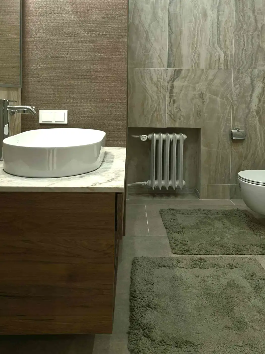 Taip pat bute atlikti visi santechnikos darbai – naujai išvedžioti vandentiekio vamzdynai, įrengta sistema, įrengtas praustuvas, unitazas bei šildomas rankšluosčių džiovintuvas.