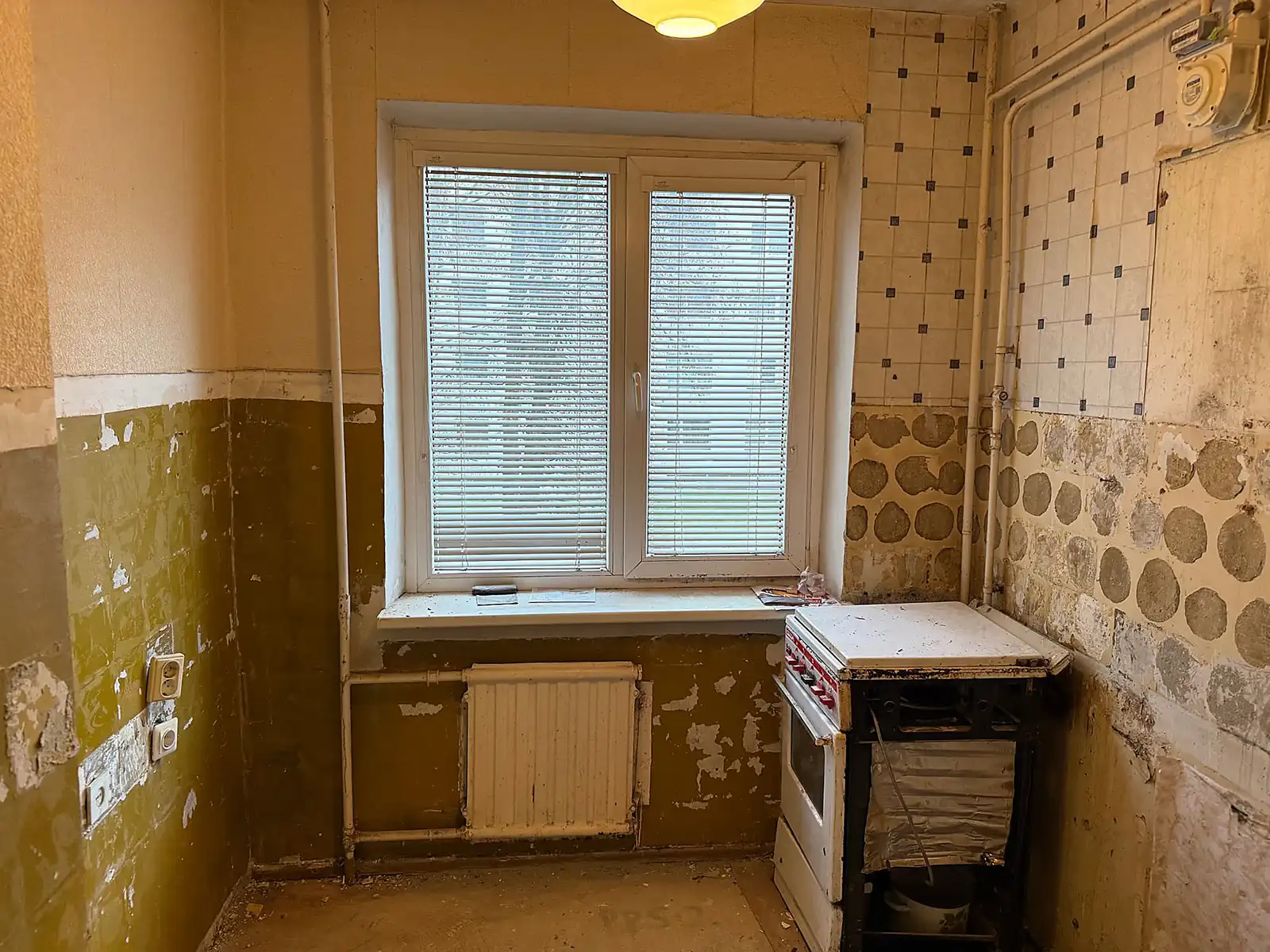 Klientai perdavė raktus šio 38 kv.m dvejų kambarių buto. Mūsų užduotis prikelti butą naujam gyvenimui. Buto šeiminikai gyvena Vilniuje, visų Apdsilos procesų rūpinsimės mes. Pakeisime langus. Naujai išvedžiosime elektrą, santechnikos vamzdzius vonios kambaryje. Suformuosime naujai vonios kambarį ir WC. Vonios kambarį išklijuosime plytelėmis ir pajungsime santechnikos prietaisus. Išbetonosime naujai grindis. Paruošime sienas dažymui ir nudažysime jas klientų pasirinkta spalva. Sudėsime vinilinę grindų dangą ir sumontuoisme grindajuostes.